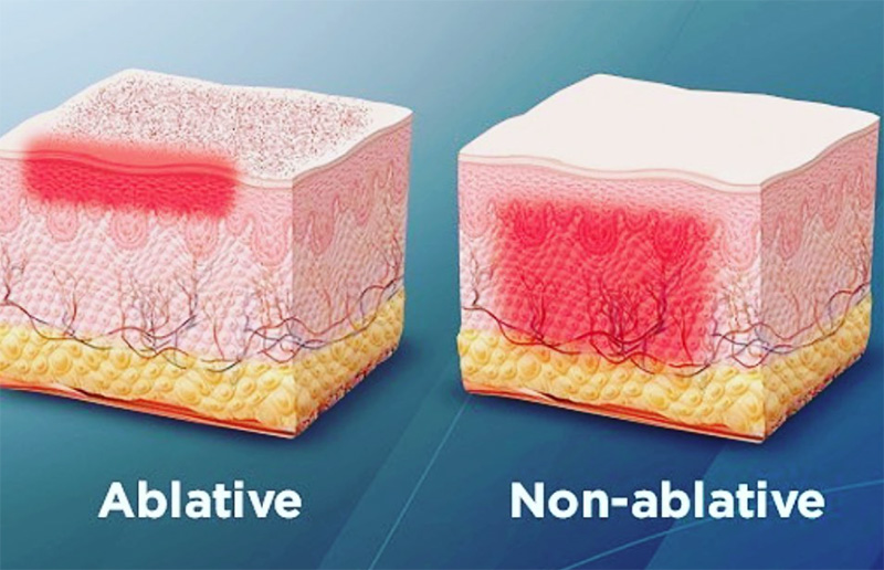 Ablativer Laser: Invasiver und erfordert Downtin für die Heilung. Er liefert in einer einzigen Sitzung häufig aggressivere Natur der Behandlung, insbesondere für Personen mit schweren Hautproblemen.