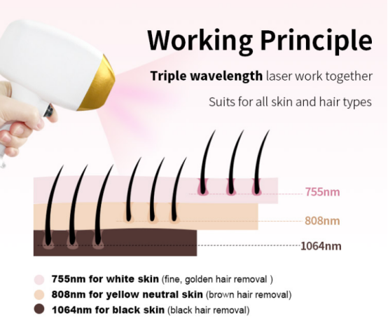 Die traditionelle Laser -Haarentfernung basiert normalerweise auf einer einzelnen Wellenlänge von Laser, die nur begrenzte Auswirkungen auf verschiedene Hauttöne und Haartypen hat. Triple-Wellen-Laser-Haarentfernung kombiniert mehrere Laserwellenlängen, um die Wellenlänge und Energie nach unterschiedlichen Bedürfnissen während der Behandlung anzupassen, wodurch eine genauere und effizientere Haarentfernung erreicht wird. Es kann nicht nur besser mit unterschiedlichen Hauttönen fertig werden, sondern auch die Nebenwirkungen der herkömmlichen Laser -Haarentfernung verringern.