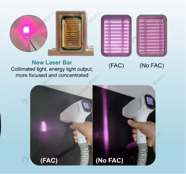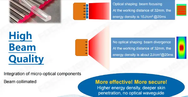 Überlegene Strahlqualität: Durch die Verringerung der Divergenz jeder Laserdiode wird der Strahl präziser, was schnellere Behandlungen und eine höhere Wirksamkeit ermöglicht.