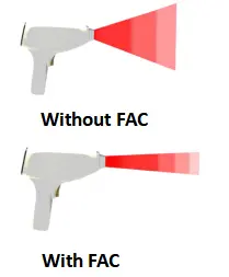 Höhere Energiedichte: FAC fokussiert den Strahl und sorgt dafür, dass fast 99 % der Leistung den Haarfollikel erreichen und nicht gestreut werden.