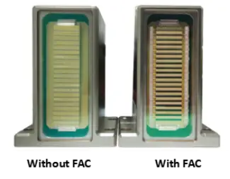 Diodenlaser sind im Allgemeinen aufgrund der hohen asymmetrischen Divergenz, insbesondere in der schnellen Achse, ineffizient. Die FAC-Technologie löst dieses Problem, indem sie eine Zylinderlinse mit hoher numerischer Apertur (NA≈0,8) direkt vor dem Laseremitter platziert und so einen kollimierten, hochintensiven Strahl erzeugt